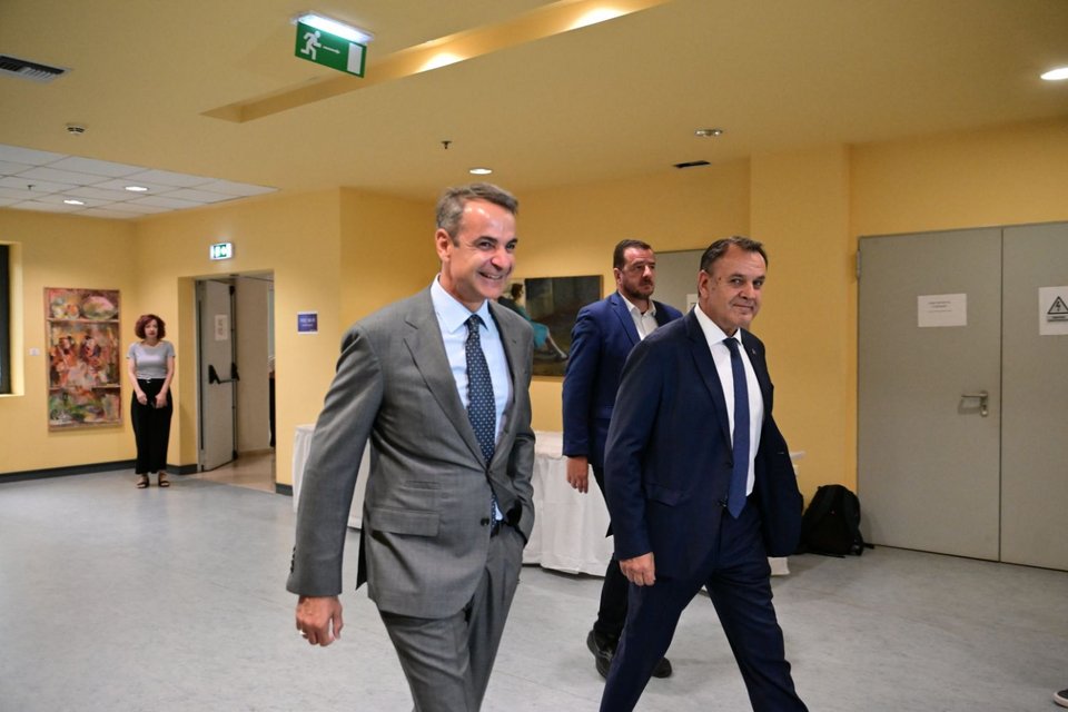 Ο πρωθυπουργός Κυριάκος Μητσοτάκης, στο πλαίσιο των επισκέψεών του στα υπουργεία όπου υπήρξε αλλαγή ηγεσίας, πέρασε σήμερα την πόρτα του υπουργείου Μετανάστευσης και Ασύλου για να συναντήσει τον Νίκο Παναγιωτόπουλο.