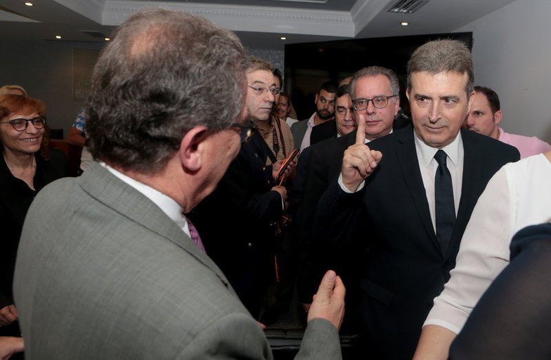 Ο φωτογραφικός φακός συνέλαβε τους δύο άνδρες να συνομιλούν χαμογελαστά με τον νέο υπουργό μάλιστα να αγκαλιάζει τον Γ. Ρουμπάτη.