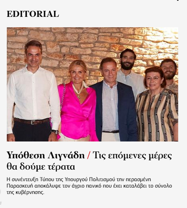 Πράγματι, στην «Αυγή, αλλά και σε φιλικά ΜΜΕ του ΣΥΡΙΖΑ, κόπηκε η Λυδία Κονιόρδου από φωτογραφία περυσινής παράστασης στην Επίδαυρο, στην οποία εμφανίζεται ο πρωθυπουργός Κυριάκος Μητσοτάκης με την σύζυγό του, η υπουργός Πολιτισμού Λίνα Μενδώνη, ο μέχρι πρότινος καλλιτεχνικός διευθυντής του Εθνικού Θεάτρου Δημήτρης Λιγνάδης, η ηθοποιός και πρώην υπουργός του ΣΥΡΙΖΑ Λυδία Κονιόρδου και άλλοι θεατρικοί παράγοντες. Ο Δημήτρης Λιγνάδης και η Λυδία Κονιόρδου συνεργάστηκαν στην παράσταση του Εθνικού Θεάτρου “Πέρσες”, η οποία ανέβηκε στην Επίδαυρο το καλοκαίρι του 2020.