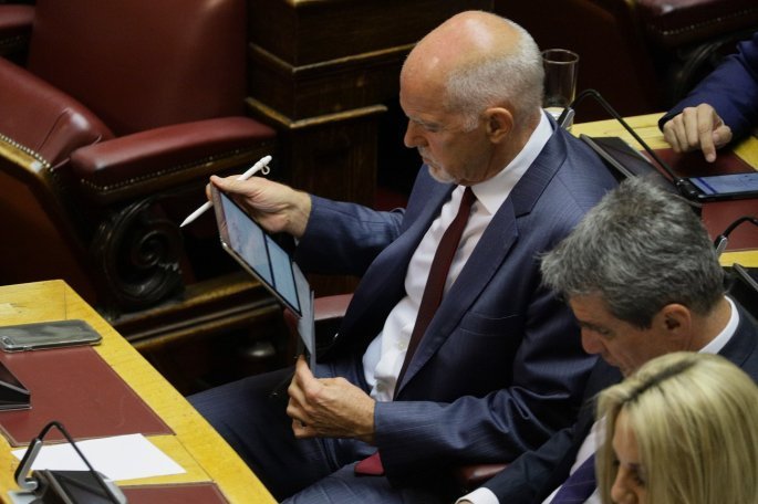 Στις προγραμματικές δηλώσεις ο Γιώργος Παπανδρέου κάθησε στο μπροστινό έδρανο, δίπλα στον (κοινοβουλευτικό εκπρόσωπο) Ανδρέα Λοβέρδο και την Φώφη Γεννηματά. Μετά από χρόνια απουσίας από τη βουλή (το κόμμα που ίδρυσε, το ΚΙΔΗΣΟ, δεν μπήκε στη βουλή το 2015) ήταν φυσικό οι φωτογράφοι να εστιάσουν πάνω του και να παρακολουθούν όλες τις κινήσεις του. Ο πρώην πρωθυπουργός, ενώ οι περισσότεροι κοιτούσαν το κινητό τους, είχε ανοίξει το iPad, χρησιμοποιώντας μάλιστα μία γραφίδα.