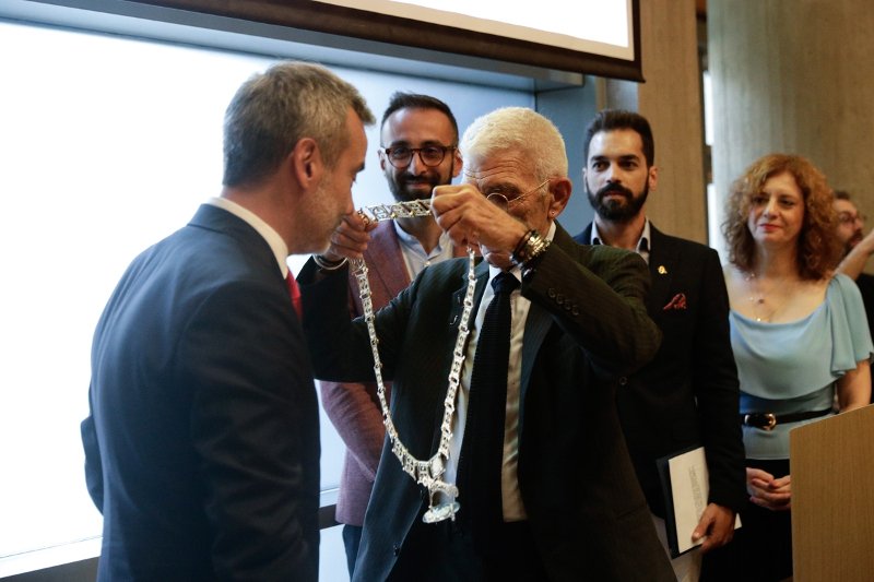 Ακολούθησε η ορκωμοσία των δημοτικών και κοινοτικών συμβούλων με θρησκευτικό και πολιτικό όρκο, ενώ στη διάρκεια της τελετής ο απερχόμενος δήμαρχος Θεσσαλονίκης, Γιάννης Μπουτάρης, παρέδωσε συμβολικά στον κ. Ζέρβα το Διάσημο, το πολύτιμο περιδέραιο, που φορά ο δήμαρχος στις επίσημες εκδηλώσεις.