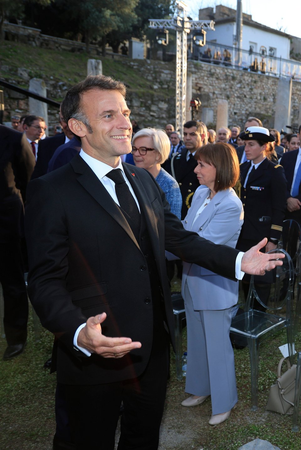 Λίγη ώρα μετά, περίπου στις 20:00 της Παρασκευής, ο Γάλλος πρόεδρος συμμετείχε σε συζήτηση με τον πρωθυπουργό στη Ρωμαϊκή Αγορά.