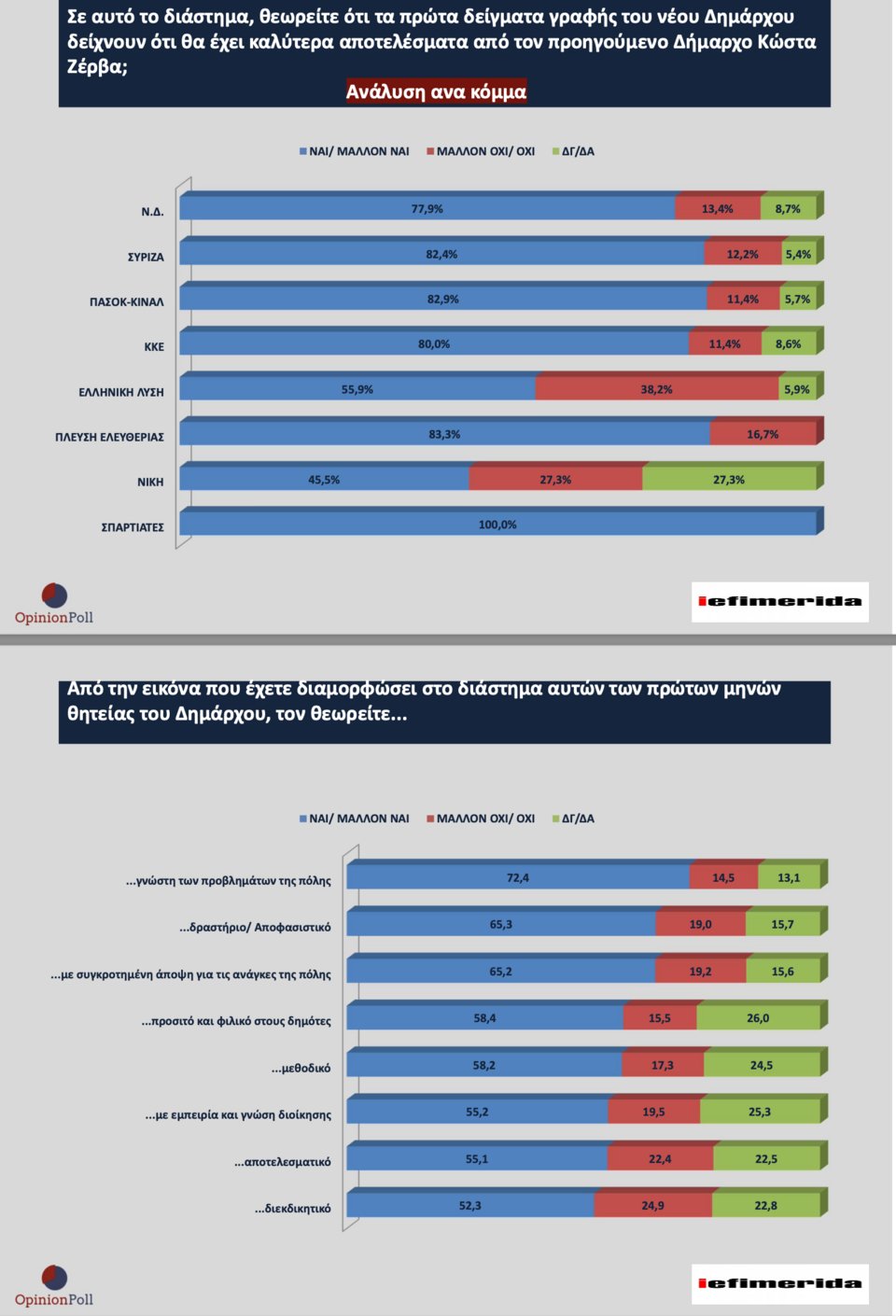 - Γνώστης των προβλημάτων της πόλης: 57,7% και 72,4%.