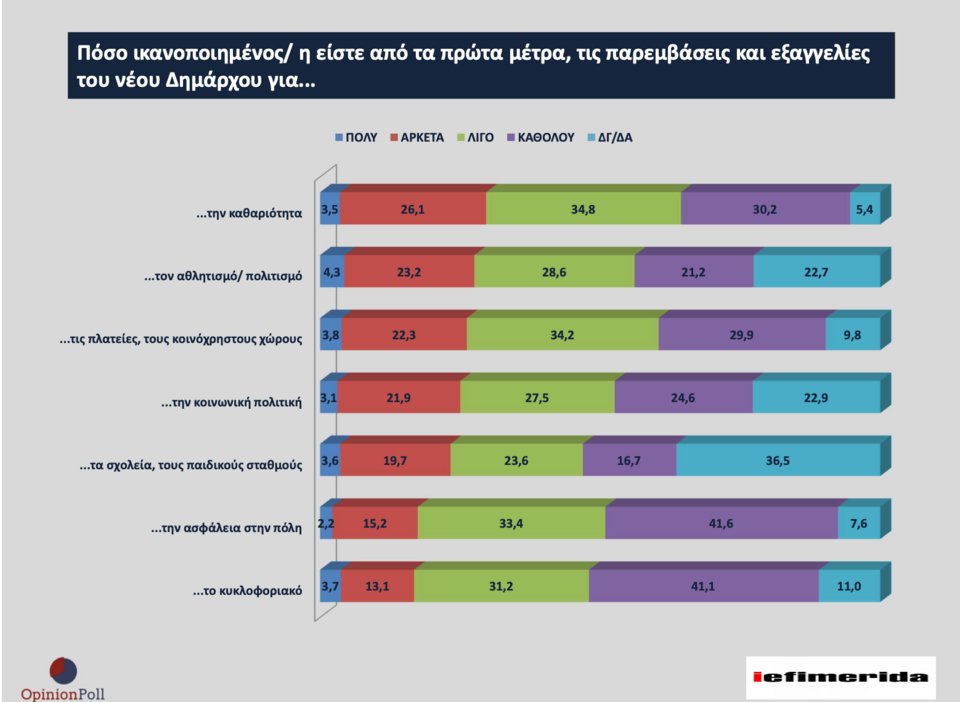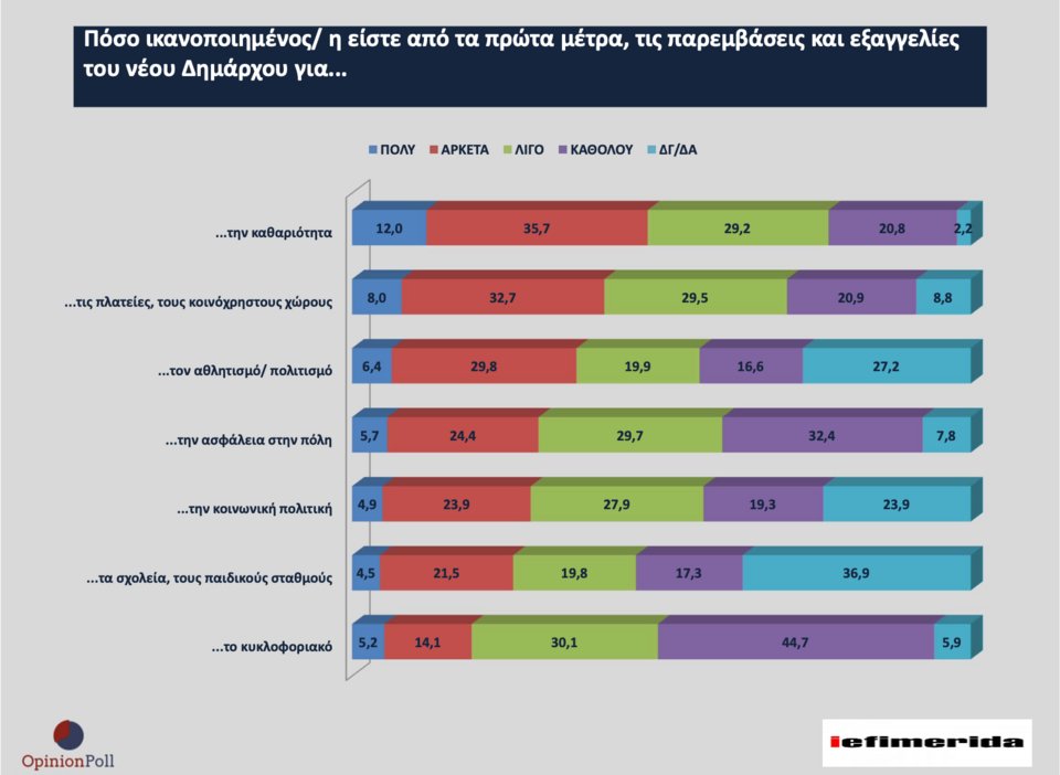 Σε επτά βασικούς τομείς δημοτικής πολιτικής ο βαθμός ικανοποίησης των πολιτών είναι: