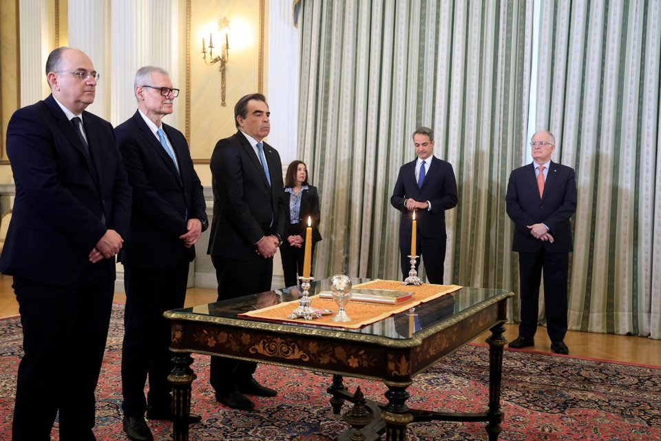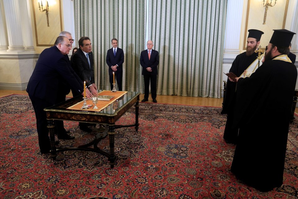 Σε μια σύντομη τελετή, τα νέα μέλη του υπουργικού ορκίστηκαν ενώπιων του Προέδρου της Δημοκρατίας, Κωνσταντίνου Τασούλα, και του πρωθυπουργού Κυριάκου Μητσοτάκης.