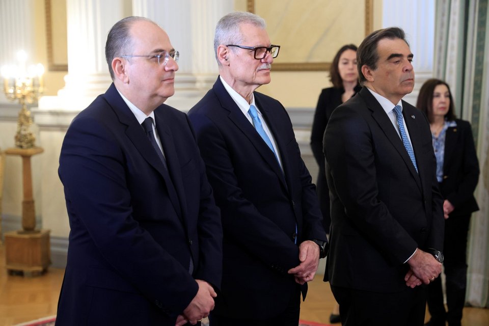 Την πόρτα του Προεδρικού Μεγάρου πέρασαν οι Μαργαρίτης Σχοινάς, Ευάγγελος Τουρνάς και Μακάριος Λαζαρίδης, προκειμένου να ορκιστούν στα νέα τους καθήκοντα.
