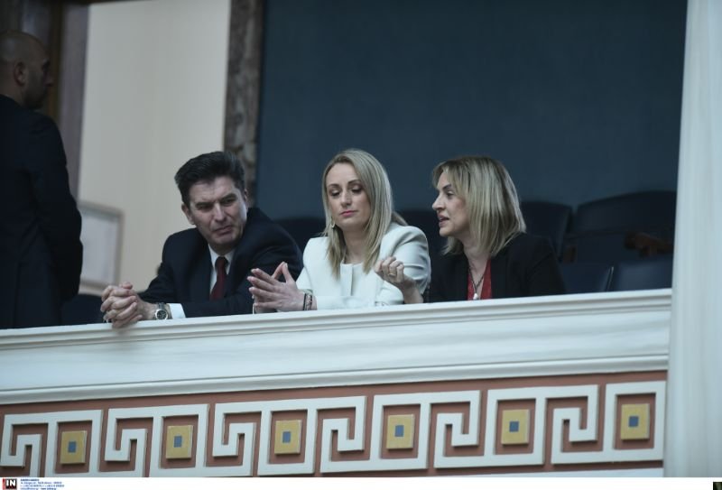 Η σύζυγος του νέου Προέδρου της Δημοκρατίας, Φανή Σταθοπούλου, μαζί με τα δύο παιδιά τους, κάθισαν στο θεωρείο που βλέπει απέναντι στο βήμα της Ολομέλειας.