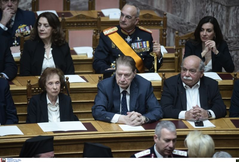 Στα επίσημα έδρανα κάθισαν, κατά σειρά, οι πρώην πρωθυπουργοί Λουκάς Παπαδήμος, Βασιλική Θάνου, Ιωάννης Σαρμάς, Παναγιώτης Πικραμένος, οι πρώην πρόεδροι της Βουλής Άννα Ψαρούδα Μπενάκη, Βύρων Πολύδωρας, Νίκος Βούτσης, ο πρόεδρος του ΣτΕ Μιχάλης Πικραμένος, η πρόεδρος του Αρείου Πάγου Ιωάννα Κλάπα και η εισαγγελέας του Αρείου Πάγου Γεωργία Αδειλίνη.