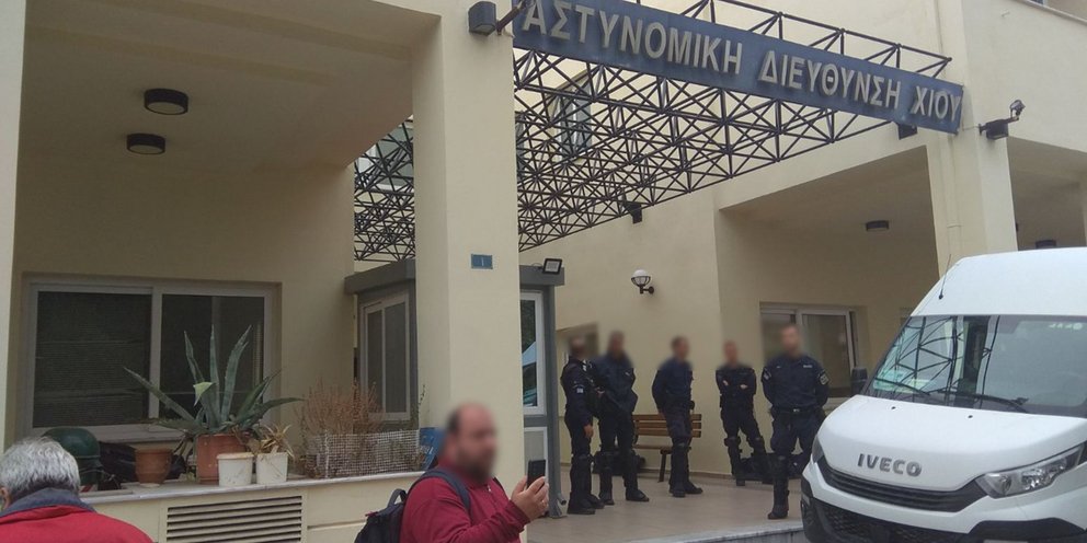 Στο πλαίσιο αυτό πραγματοποιήθηκε και συγκέντρωση διαμαρτυρίας έξω από το Αστυνομικό Τμήμα Χίου.