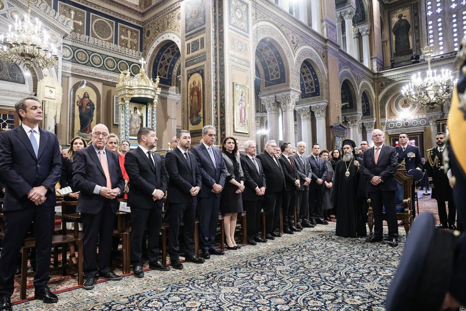 Με ιδιαίτερη λαμπρότητα, παρουσία του Προέδρου της Δημοκρατίας Κωνσταντίνου Τασούλα και του πρωθυπουργού Κυριάκου Μητσοτάκη, τελέστηκε σήμερα το πρωί στον Καθεδρικό Ιερό Ναό Αθηνών υπό τη διοργάνωση της Περιφέρειας Αττικής η καθιερωμένη πανηγυρική δοξολογία για το νέο έτος, χοροστατούντος του Αρχιεπίσκοπου Αθηνών και Πάσης Ελλάδος κ. κ. Ιερώνυμου.