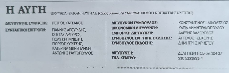 Δείτε εδώ τη σημερινή ταυτότητα της «Αυγής»: