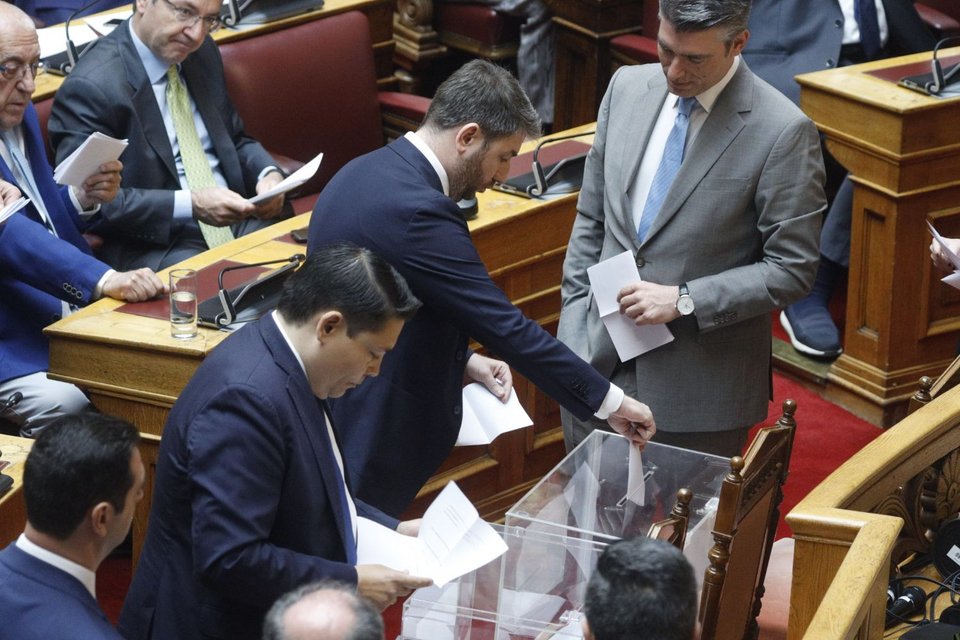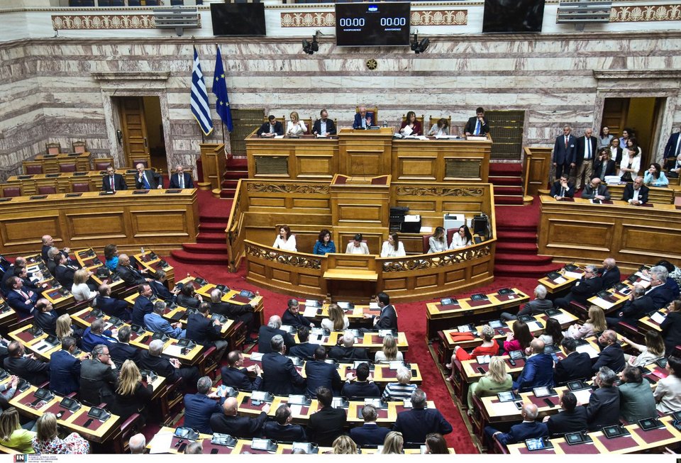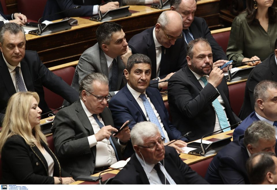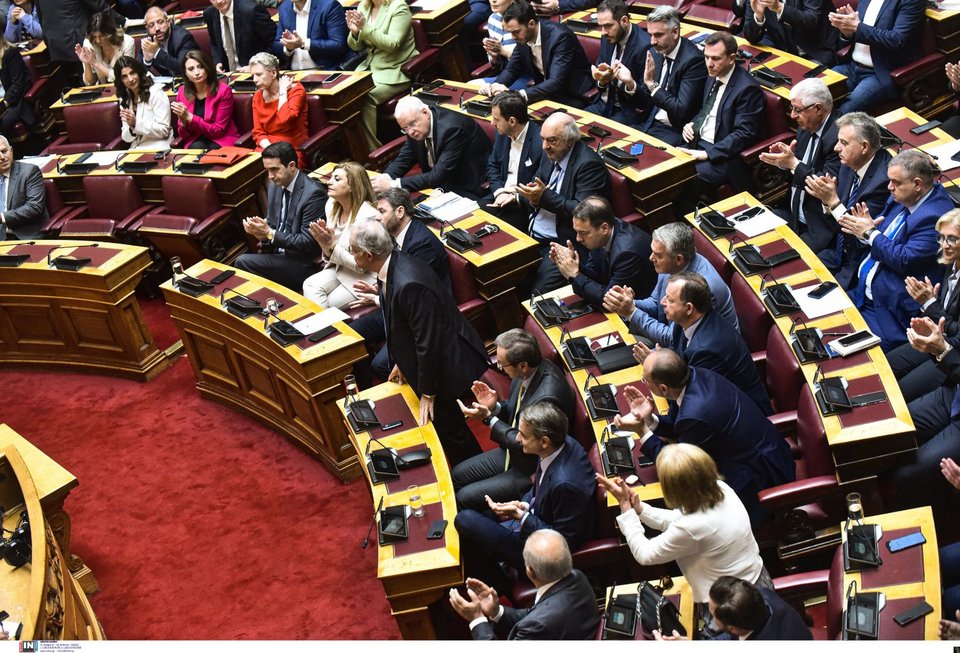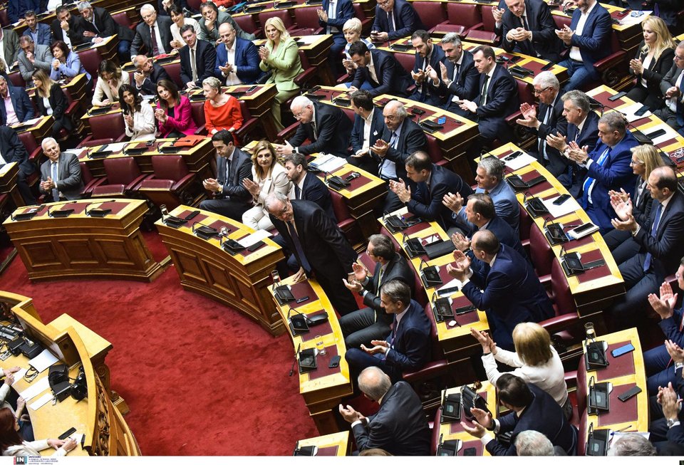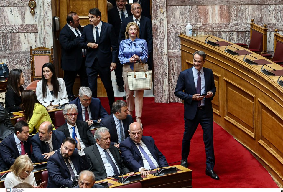 Στα κυβερνητικά έδρανα η υπηρεσιακή κυβέρνηση και ο πρόεδρος της Βουλής να εξηγεί προφανώς τα διαδικαστικά