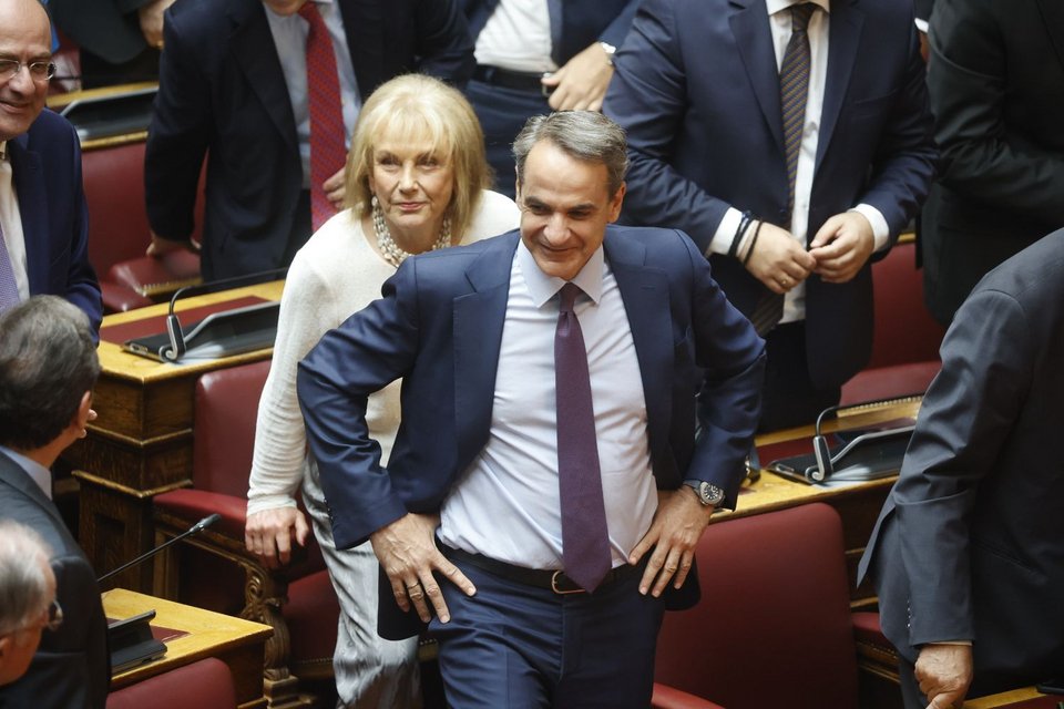 Χαμόγελα και πειράγματα στην πτέρυγα της ΝΔ με τον Κυριάκο Μητσοτάκη στο επίκεντρο