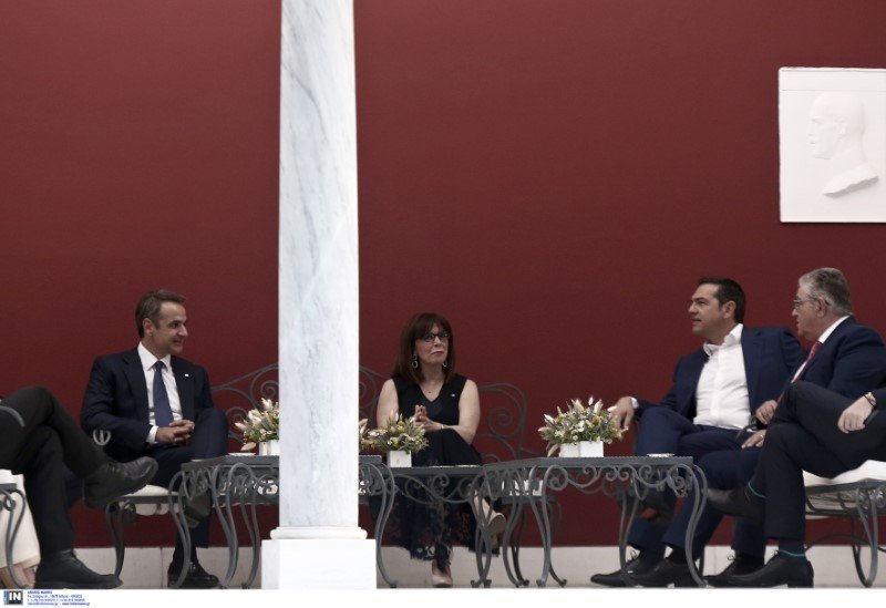 Μετά τη δήλωση Σακελλαροπούλου, η Πρόεδρος της Δημοκρατίας μαζί με τους πολιτικούς αρχηγούς κάθισαν στο κιόσκι του Προεδρικού Μεγάρου. Ωστόσο, δημοσιογράφοι και φωτογράφοι κρατήθηκαν σε απόσταση.
