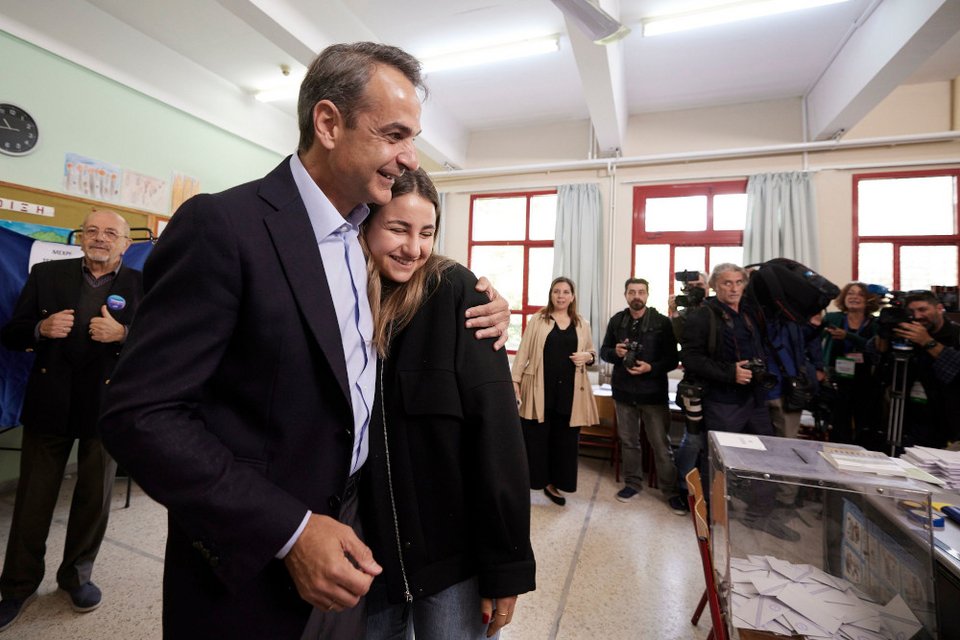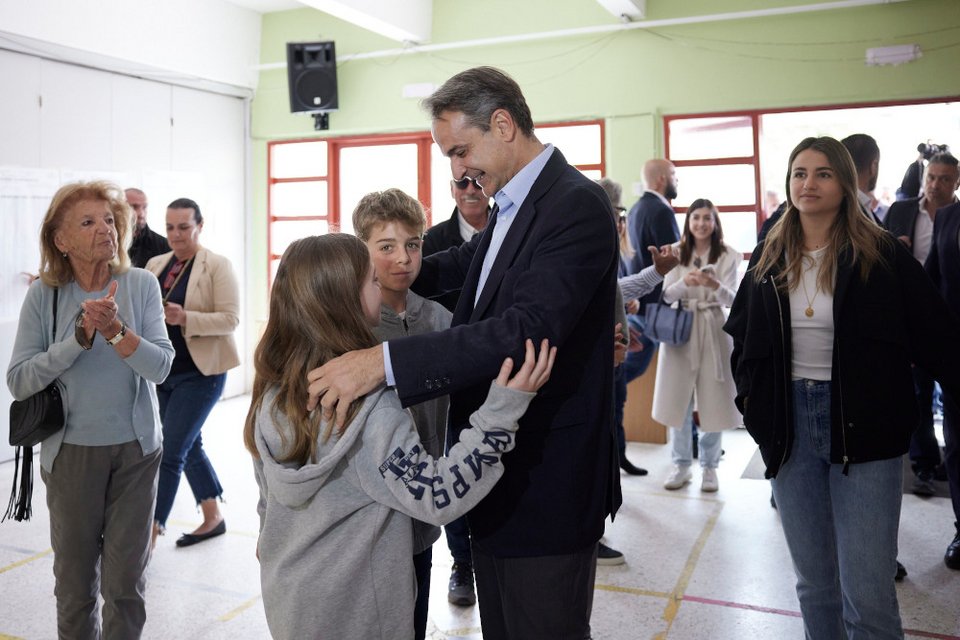Παράλληλα με τον πρωθυπουργό ψήφισε και ο γιος του, Κωνσταντίνος, αλλά και η κόρη του, Δάφνη. Μάλιστα, καθώς αργούσε ο γιος του να εξέλθει του παραβάν, ο κ. Μητσοτάκης σχολίασε με χιούμορ: «Ελπίζω να σκέφτεται μόνο τους σταυρούς».