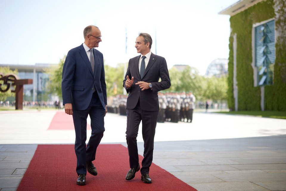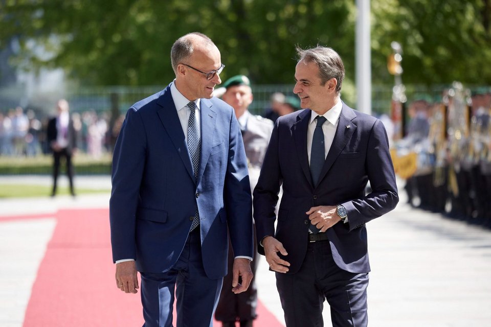 Σε εξέλιξη βρίσκεται στο Βερολίνο η συνάντηση του Κυριάκου Μητσοτάκη με τον Γερμανό καγκελάριο Φρίντριχ Μερτς.
