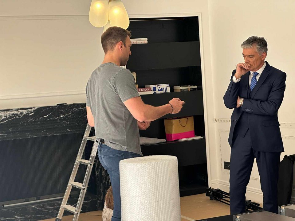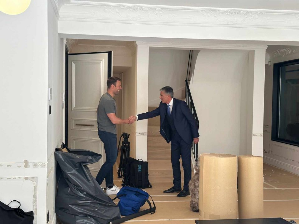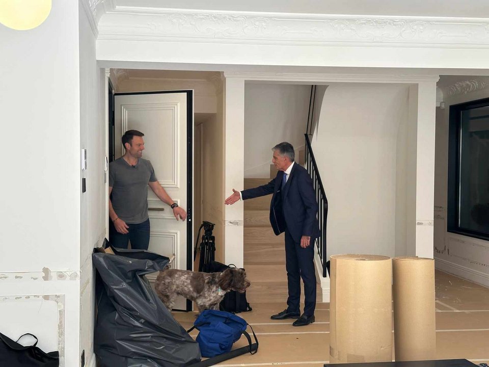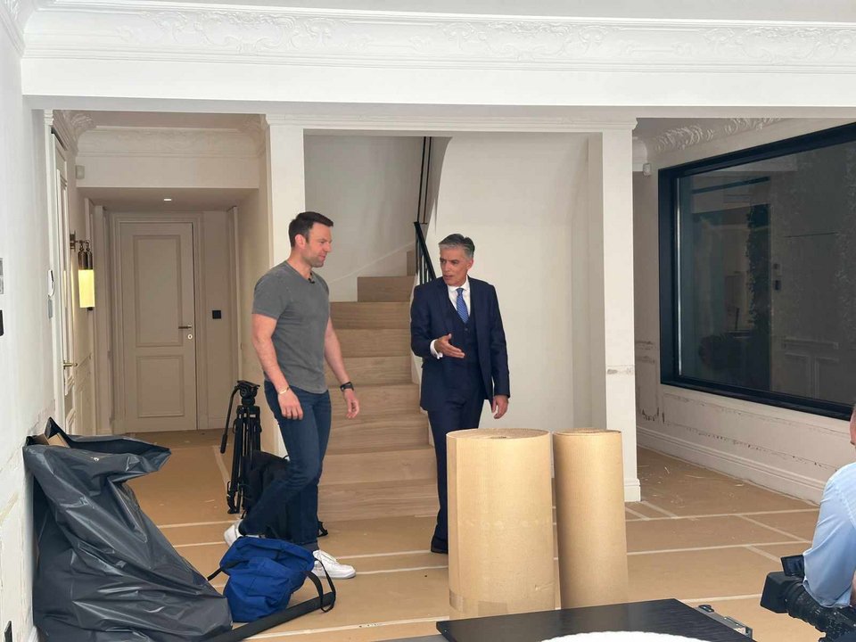 Λίγο πριν την ζωντανή συνέντευξη στο LiveNews, ο πρόεδρος του ΣΥΡΙΖΑ ξενάγησε τον Ν. Ευαγγελάτο στη μεζονέτα εμβαδού 250 τ.μ. που απέκτησε πρόσφατα με τον σύζυγό του, Τάιλερ ΜακΜπεθ έναντι τιμήματος 1,7 εκατ. ευρώ που πουλήθηκε από τον οίκο Sotheby’s. Για την ακρίβεια, ο δημοσιογράφος μαζί με το τηλεοπτικό συνεργείο... υποδέχθηκαν τον Στ. Κασσελάκη στο σπίτι του, ανοίγοντας την πόρτα και ανταλάσσοντας χειραψία.