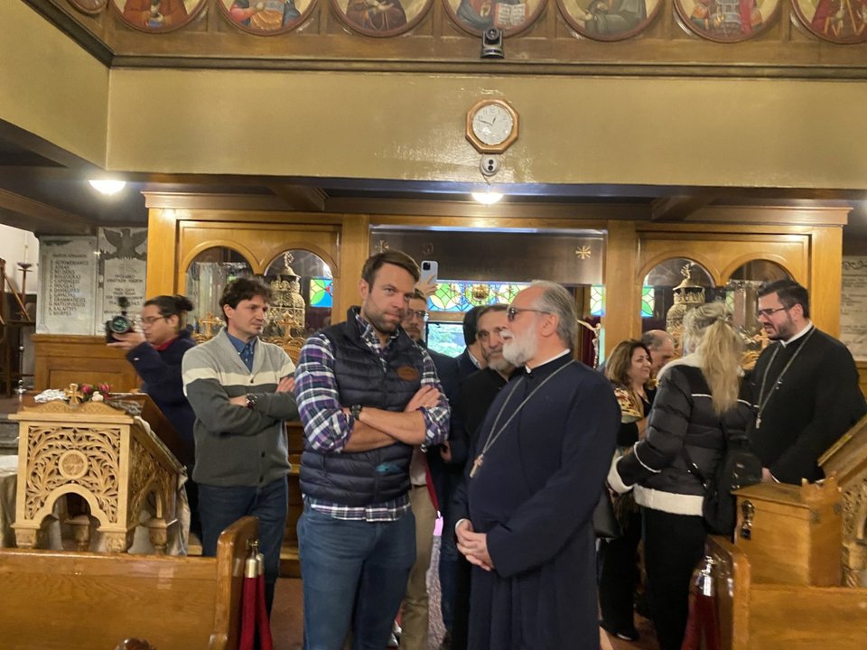 Τον κ. Κασσελάκη, ο οποίος συνοδευόταν από τον σύζυγό του, Τάιλερ ΜακΜπέθ και μέλη του ΣΥΡΙΖΑ Νέας Υόρκης, υποδέχθηκε ο πρόεδρος της Κοινότητας, Νίκος Παπαϊωάνου, ο ιερατικώς προϊστάμενος, π. Ανάργυρος Σταυρόπουλος, ο προϊστάμενος του σχολείου, π. Γρηγόριος Σταμκόπουλος και το μέλος του Δ.Σ, Κωνσταντίνος Λαμπρόπουλος, με την σύζυγό του και δικηγόρο, Μαρία Μάρκου.