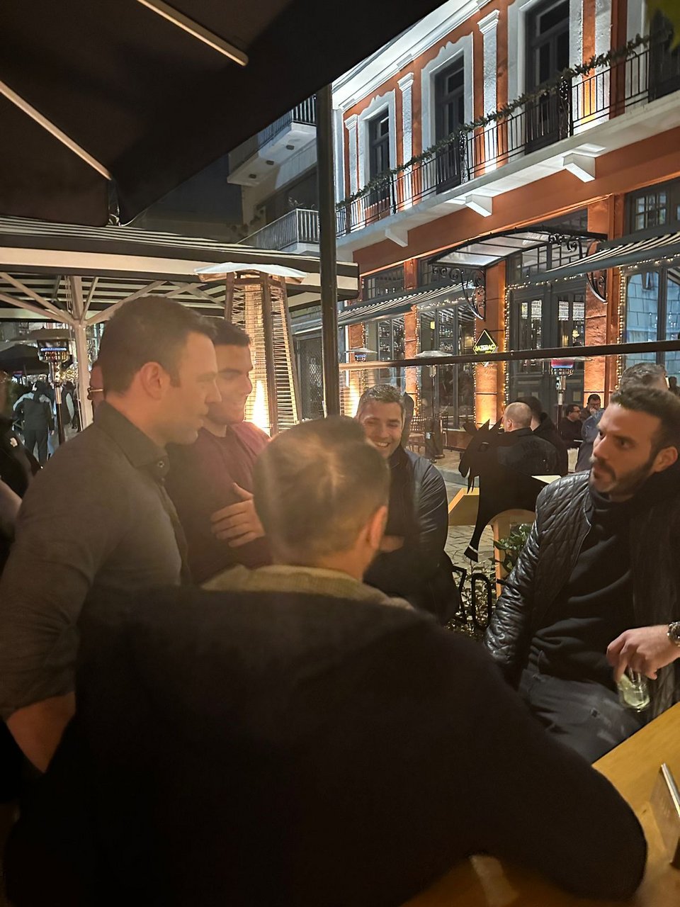 Στέφανος Κασσελάκης και Νίκος Παππάς ήταν ευδιάθετοι, συνομίλησαν με τους θαμώνες του μπαρ και δεν δίστασαν μάλιστα να φωτογραφηθούν μαζί τους.