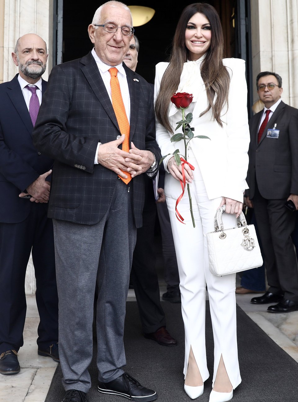 Η Κίμπερλι Γκίλφοϊλ με το τριαντάφυλλο που της προσέφερε ο Νικήτας Κακλαμάνης