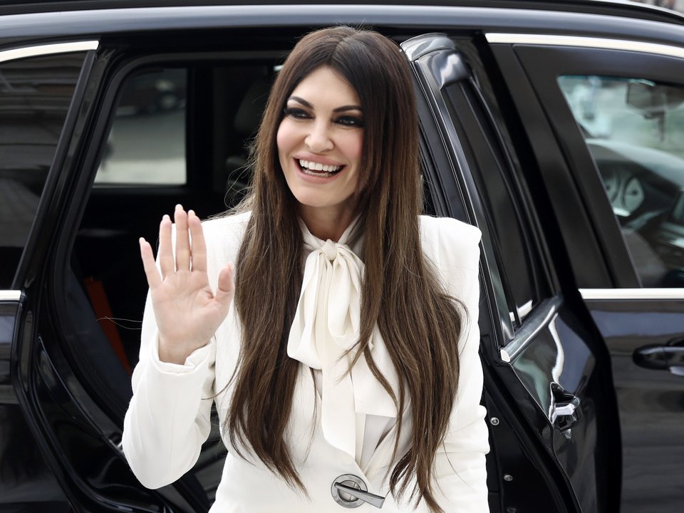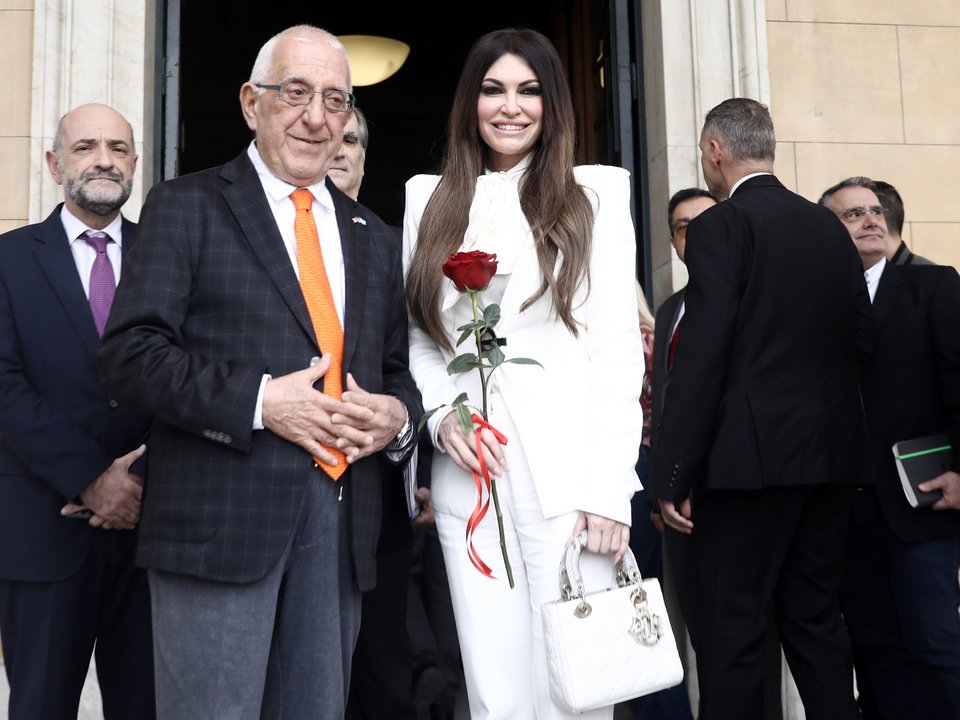 Η Κίμπερλι Γκίλφοϊλ με το τριαντάφυλλο που της προσέφερε ο Νικήτας Κακλαμάνης / Φωτογραφία: INTIME NEWS / ΖΑΧΟΣ ΓΙΩΡΓΟΣ