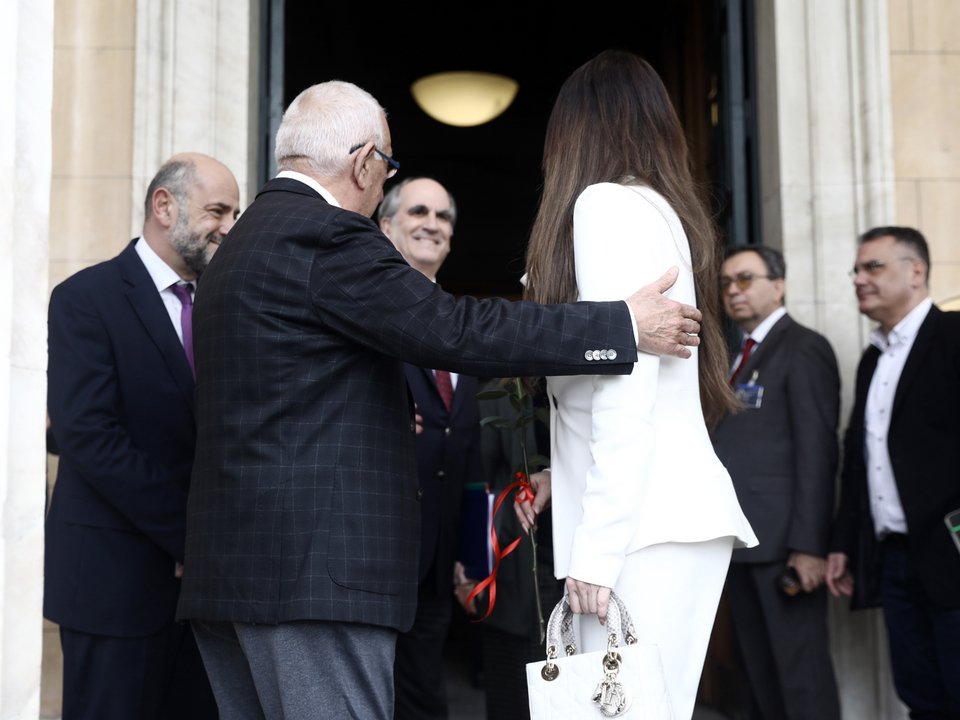 Ο Νικήτας Κακλαμάνης την υποδέχθηκε με ένα κόκκινο τριαντάφυλλο και με θερμή χειραψία, ενώ στη συνέχεια οδηγήθηκαν στο εσωτερικό του κτιρίου της Βουλής ώστε να συζητήσουν, με τις σχέσεις των δύο χωρών να βρίσκονται στο επίκεντρο.