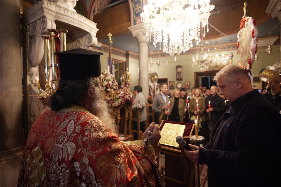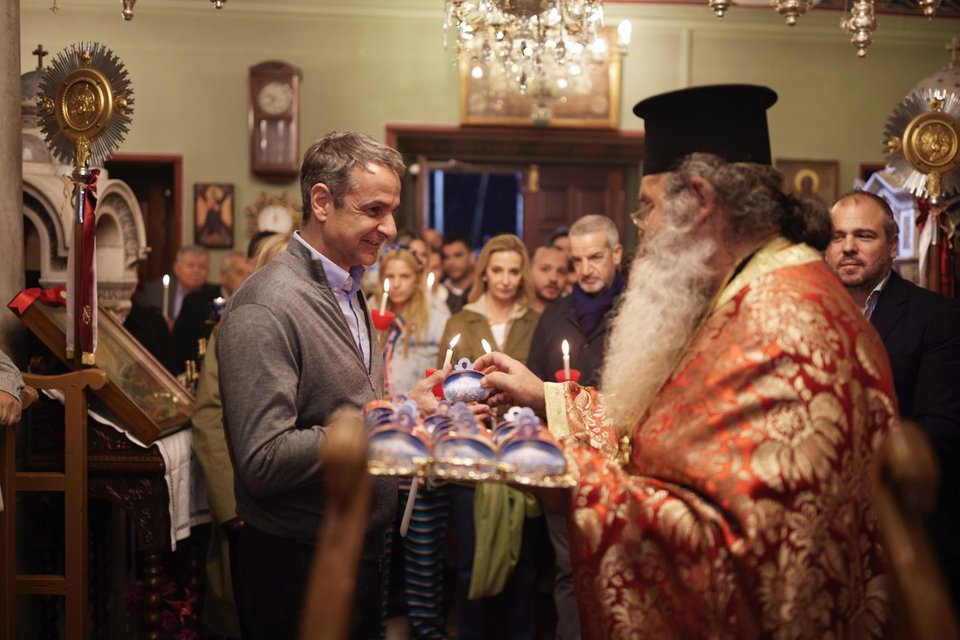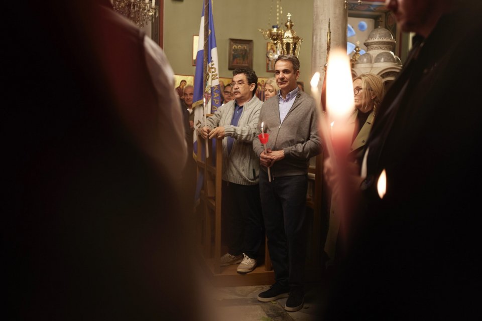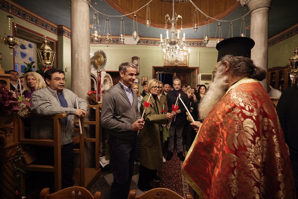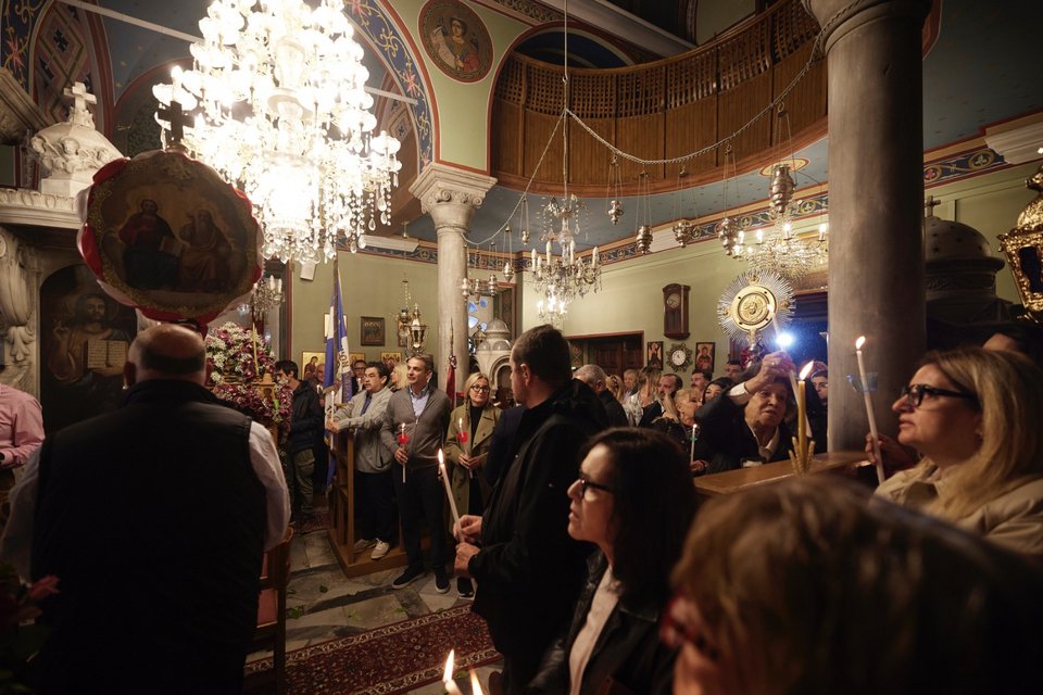 Στην Τήνο βρίσκεται ο πρωθυπουργός Κυριάκος Μητσοτάκης και παρακολούθησε την Αναστάσιμη λειτουργία στον Ιερό Ναό Αγίας Τριάδας Καρδιανής.