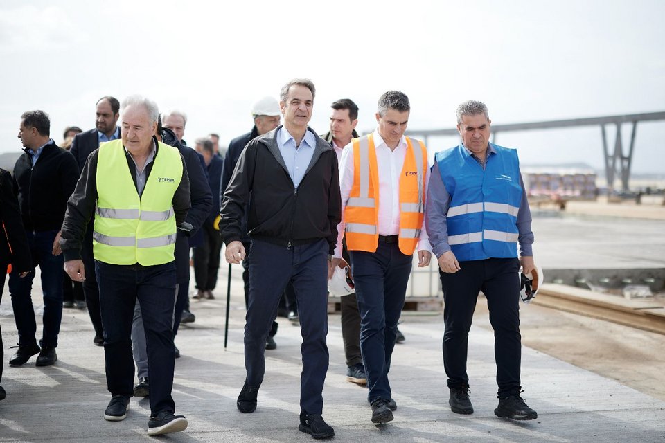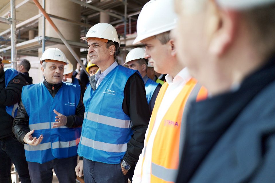 Ξενάγηση Μητσοτάκη στο εργοτάξιο του Καστελίου