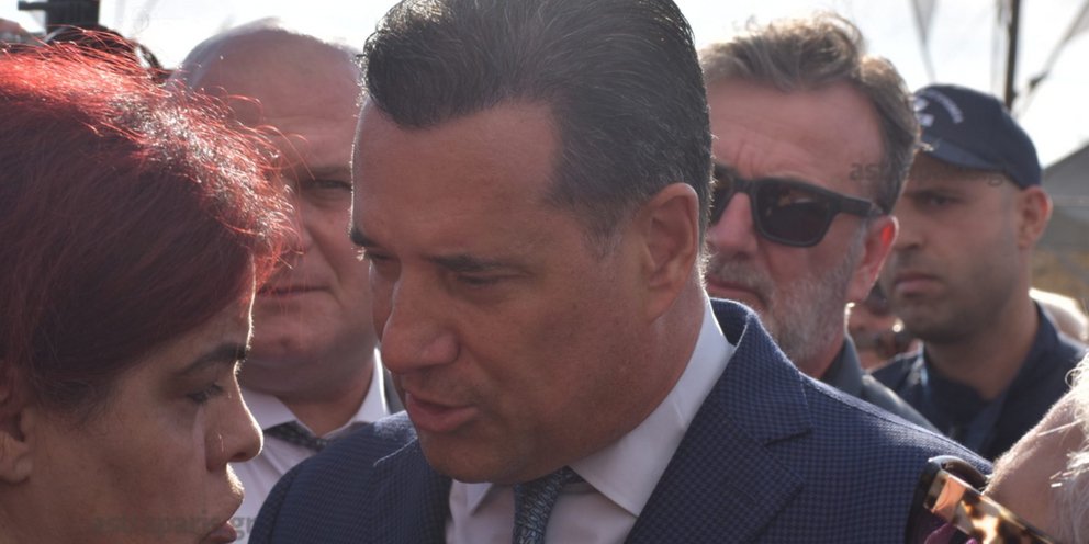 Πεζός, μπροστά από διαμαρτυρόμενους στο νοσοκομείο της Χίου προσήλθε ο Υπουργός Υγείας, Άδωνις Γεωργιάδης, κατά τη διάρκεια της επίσκεψής του στο «Σκυλίτσειο».