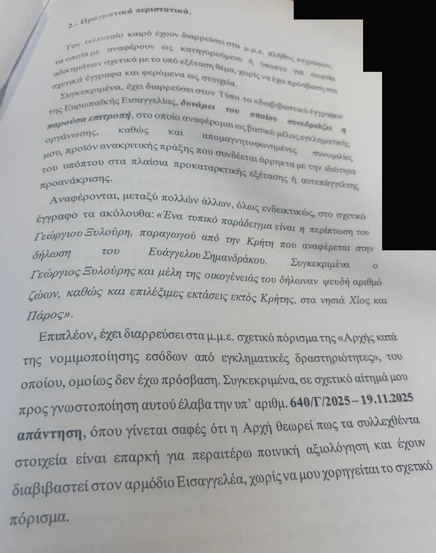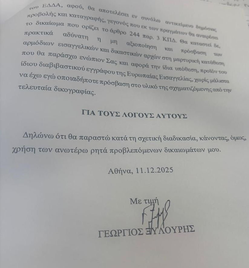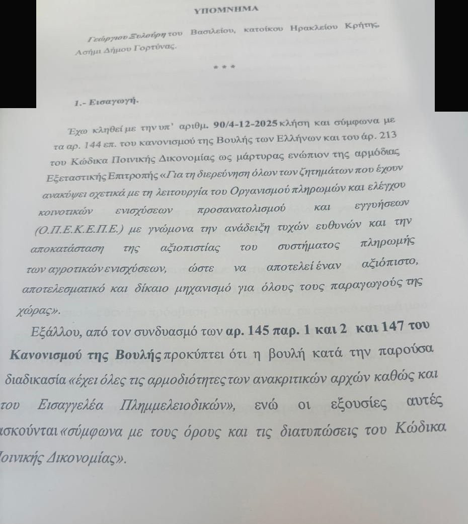 Το υπόμνημα που κατέθεσε στην Εξεταστική Επιτροπή ο Γιώργος Ξυλούρης
