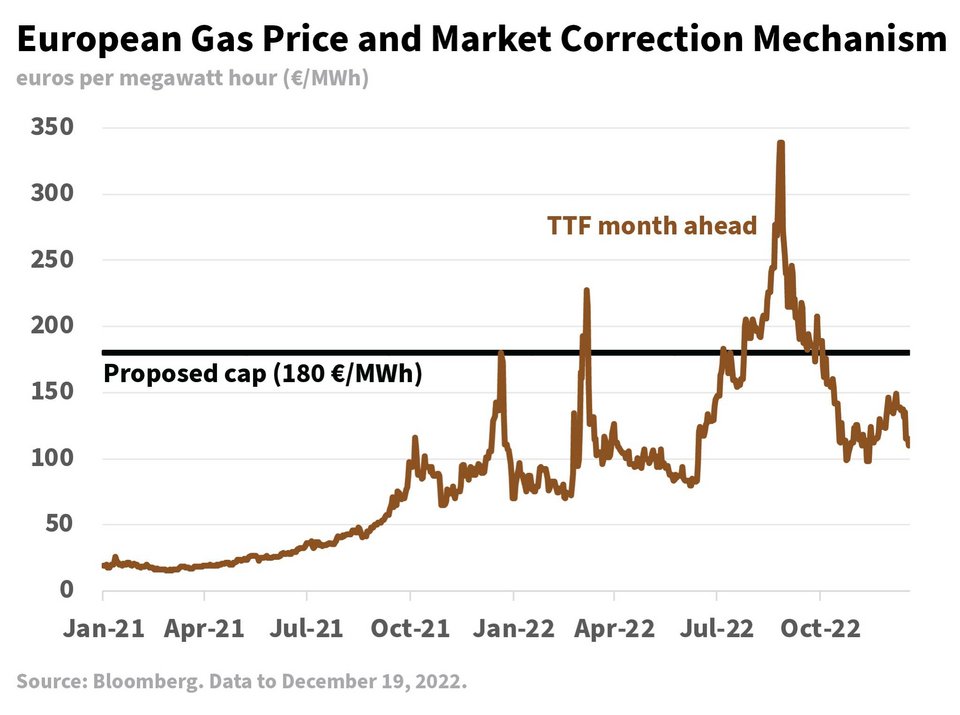 Το ανώτατο όριο τιμής ορίστηκε στα 180 ευρώ/MWh και θα ισχύει από 15 Φεβρουαρίου για τον δείκτη τιμών TTF και από 31 Μαρτίου 2023 για όλους τους υπόλοιπους δείκτες, έπειτα από αξιολόγηση του ESMA και του ACER.