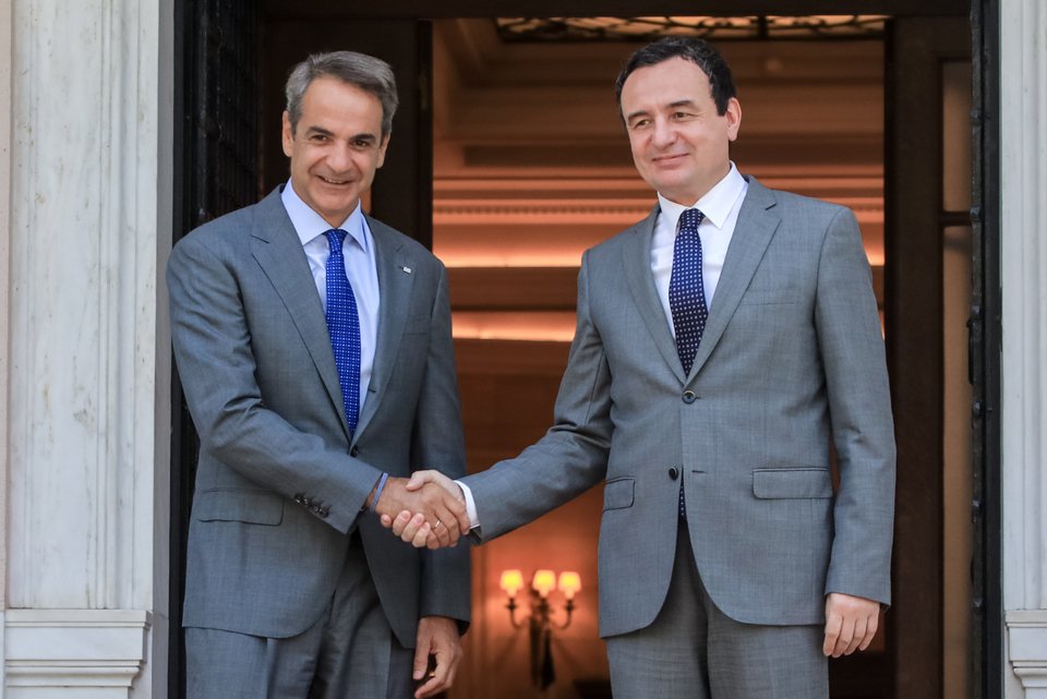 Στη συνέχεια, ο Κυριάκος Μητσοτάκης είχε συνάντηση με τον πρωθυπουργό του Κοσόβου Albin Kurti. Οι ίδιες πηγές επισημαίνουν ότι συζητήθηκε η συνέχιση της ανάπτυξης των διμερών σχέσεων με έμφαση στην οικονομική συνεργασία. Μάλιστα, ο κ. Μητσοτάκης υπογράμμισε τη σημασία, που αποδίδει η Ελλάδα στον Διάλογο Βελιγραδίου - Πρίστινας για την εξομάλυνση των σχέσεων του Κοσόβου με τη Σερβία.