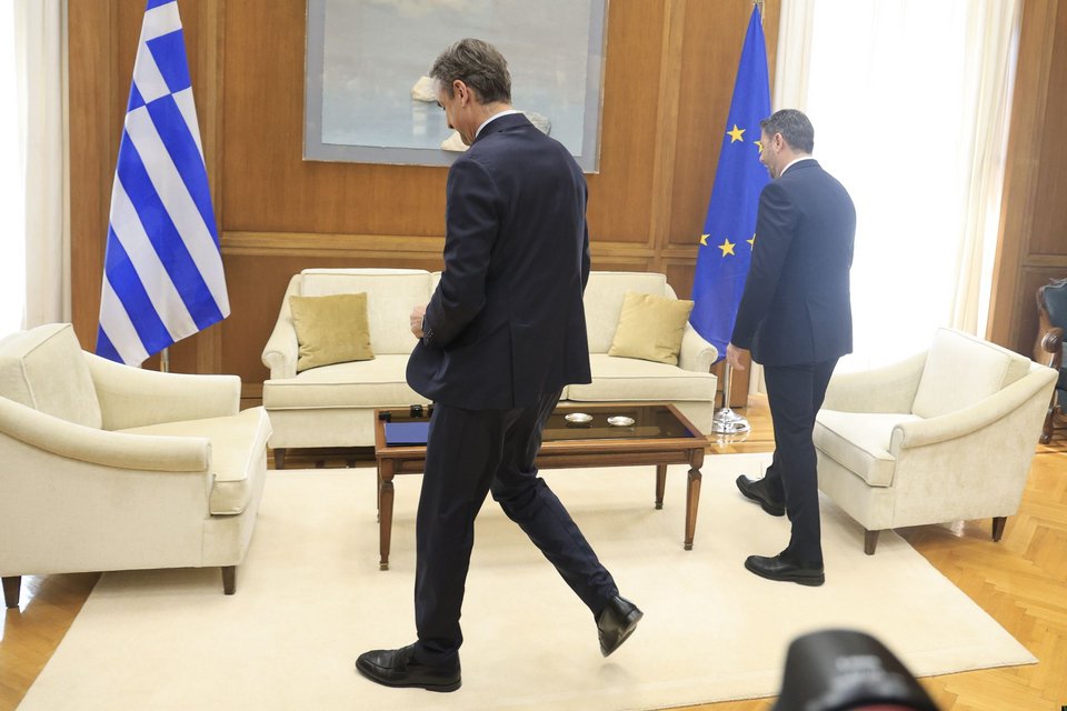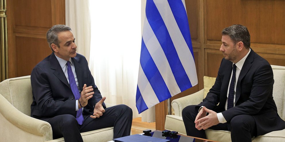 Περίπου 40 λεπτά διήρκεσε η συνάντηση του Κυριάκου Μητσοτάκη με τον Νίκο Ανδρουλάκη στο γραφείο του πρωθυπουργού στη Βουλή.
