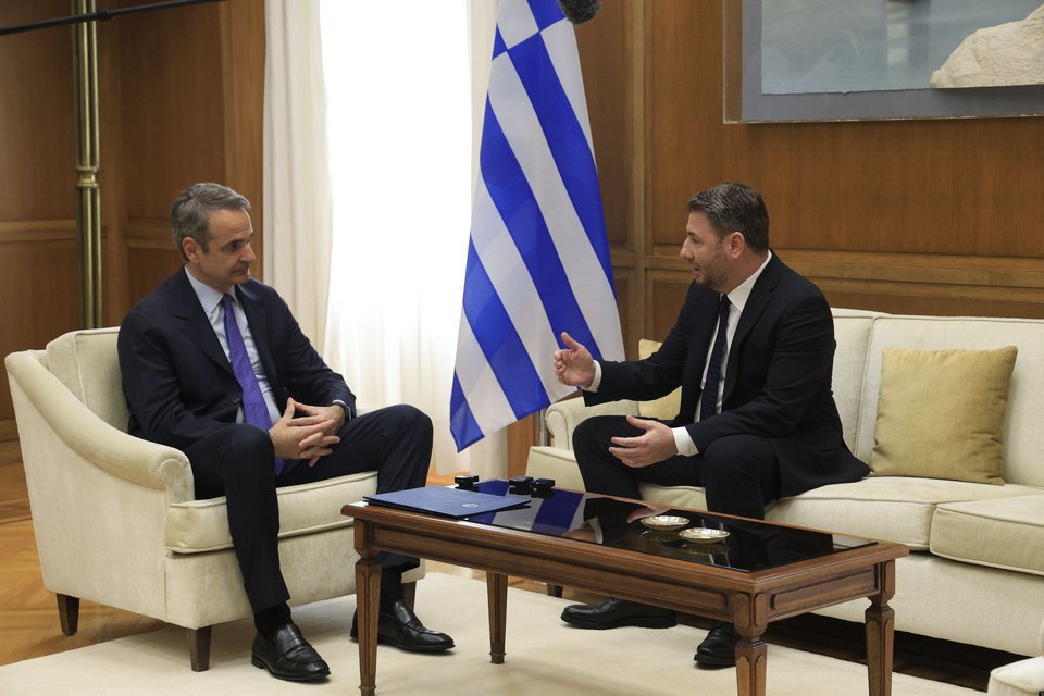 Εικόνες από τη συνάντηση Μητσοτάκη-Ανδρουλάκη