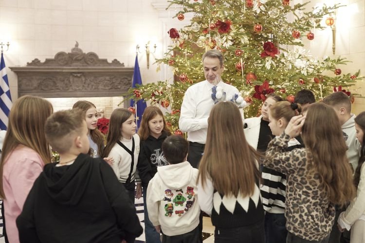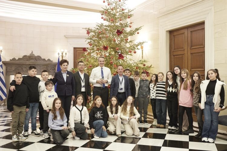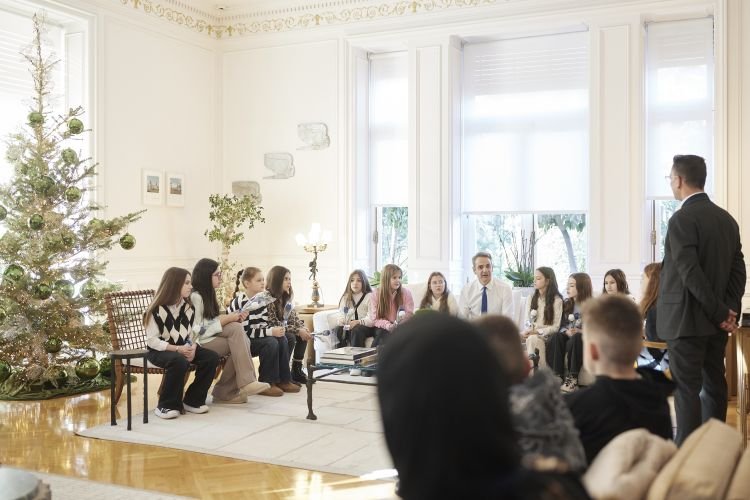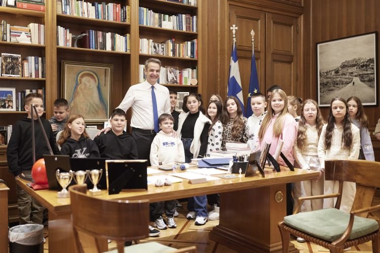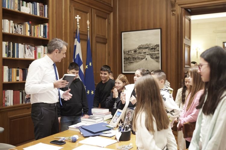 Ο Κυριάκος Μητσοτάκης υποδέχθηκε στο Μέγαρο Μαξίμου τις μαθήτριες και τους μαθητές των Ε' και ΣΤ' τάξεων του μειονοτικού Δημοτικού Σχολείου Πάχνης Ξάνθης, που συνοδεύονταν από τους δασκάλους και τους γονείς τους.