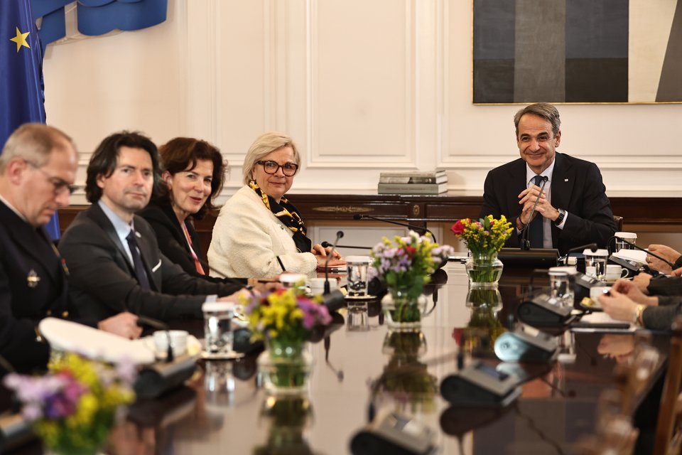 O Κυριάκος Μητσοτάκης συναντήθηκε στο Μέγαρο Μαξίμου με την Υπουργό Άμυνας της Γαλλίας Καρίν Βοτρέν.