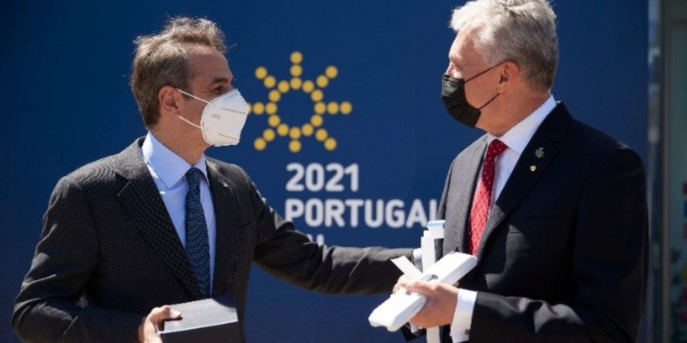 Οι δύο άνδρες κατά τη διάρκεια της συνομιλίας τους στο περιθώριο της άτυπης σύσκεψης των ηγετών κρατών και κυβερνήσεων της ΕΕ, στο Πόρτο της Πορτογαλίας αντάλλαξαν και δώρα επ' ευκαιρία των 200 ετών από την Ελληνική Επανάσταση.