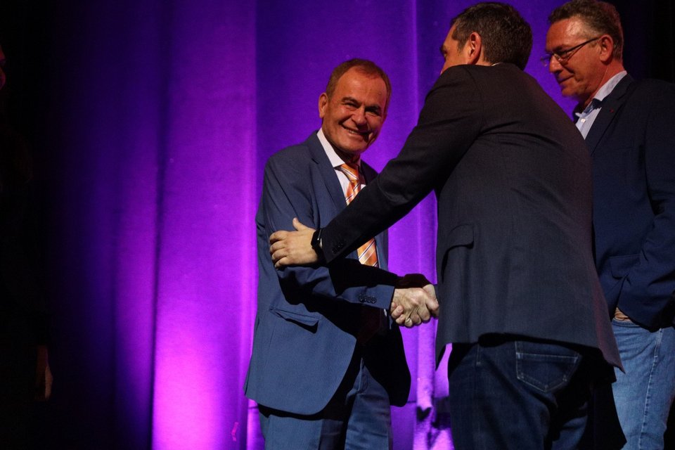 Ο Στέφανος Κασσελάκης, αφού ολοκληρώθηκε η σχεδόν τρίωρη εκδήλωση, πήρε στο τέλος τον λόγο και κάλεσε τον Αλέξη Τσίπρα στην σκηνή, ο οποίος καταχειροκροτούμενος ανέβηκε και χαιρέτησε έναν έναν τους υποψήφιους ευρωβουλετές.