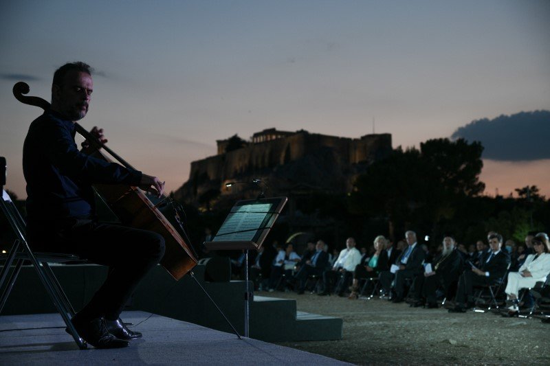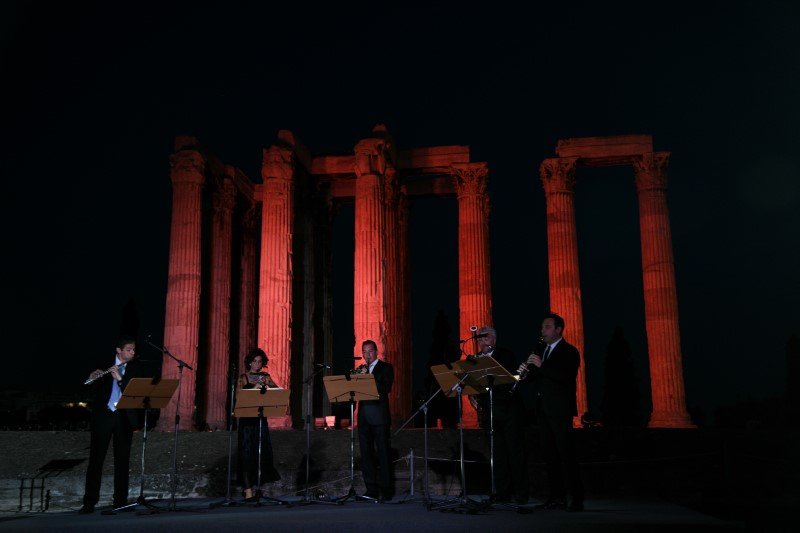 Εντυπωσιακό ήταν το σκηνικό στους επιβλητικά φωτισμένους στύλους του Ολυμπίου Διός, με φόντο την Ακρόπολη, στην εκδήλωση της ελληνικής προεδρίας του Συμβουλίου της Ευρώπης που πραγματοποιήθηκε υπό τους ήχους κλασικής μουσικής, παρουσία της ΠτΔ και του Κυριάκου Μητσοτάκη και της συζύγου του Μαρέβας.