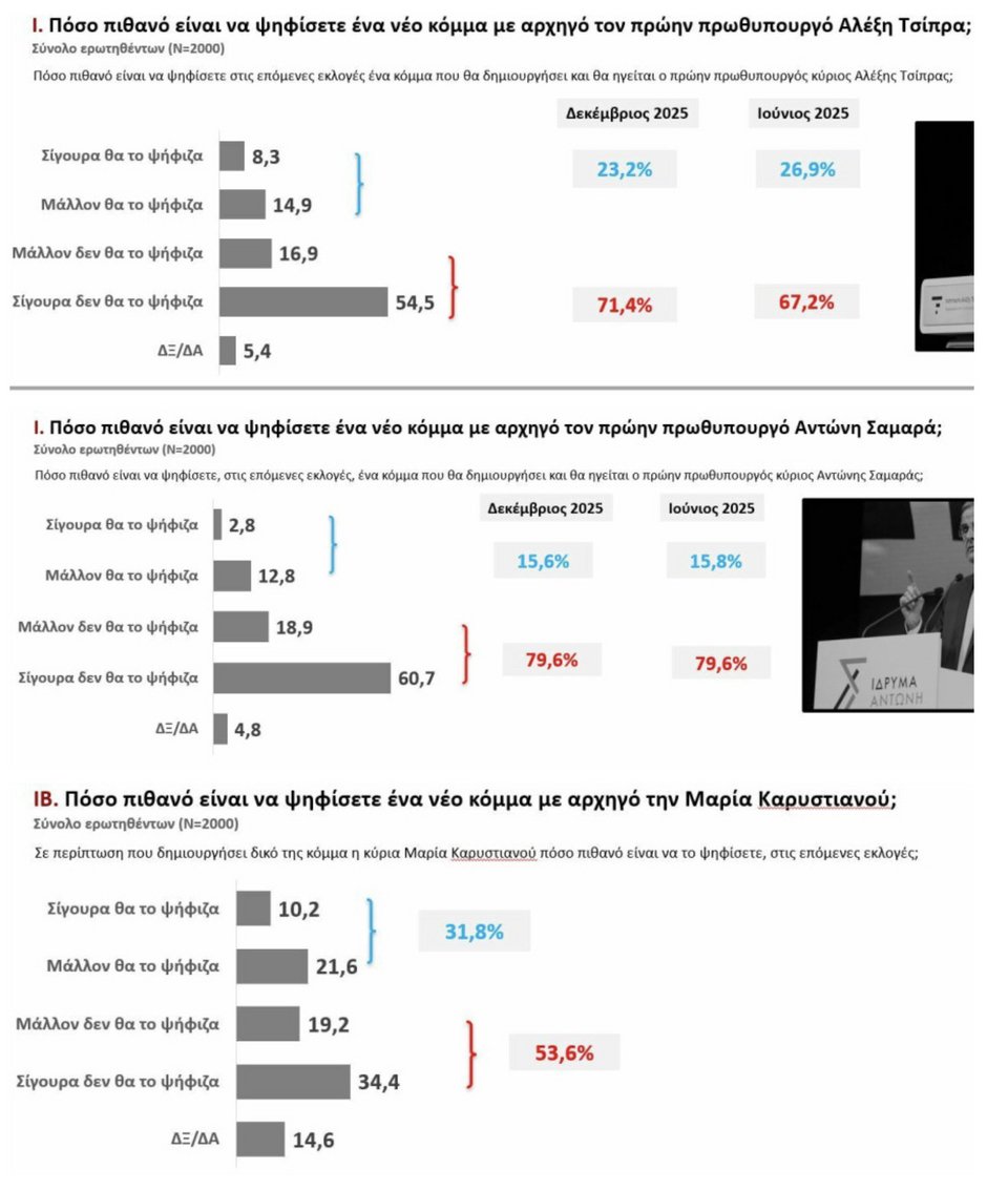 Εκτός όμως από την πρόθεση ψήφου, ιδιαίτερο ενδιαφέρον παρουσιάζουν οι απαντήσεις των πολιτών για τον Αλέξη Τσίπρα, τον Αντώνη Σαμαρά και τη Μαρία Καρυστιανού.
