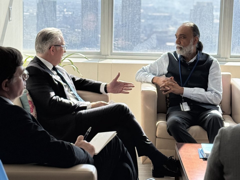 «Με τον Γενικό Γραμματέα του ΟΗΕ μοιράστηκα την ιδέα μου να διοργανωθεί ένα διεθνές συνέδριο, τον Δεκέμβριο στο Λονδίνο, για θέματα που αφορούν στην Τεχνητή Νοημοσύνη και τους κινδύνους για τη Δημοκρατία από την αλόγιστη χρήση της. Συζητήσαμε, επίσης, ζητήματα που αφορούν συνολικά στην υποχώρηση της Δημοκρατίας εξαιτίας του λαϊκισμού, σε πολλές περιοχές του πλανήτη μας, και τους κινδύνους που κυριαρχούν πλέον εξαιτίας όσων πιστεύουν ότι πρέπει να επικρατεί η δύναμη των όπλων ή του χρήματος έναντι της δύναμης της Δημοκρατίας και του νόμου.»