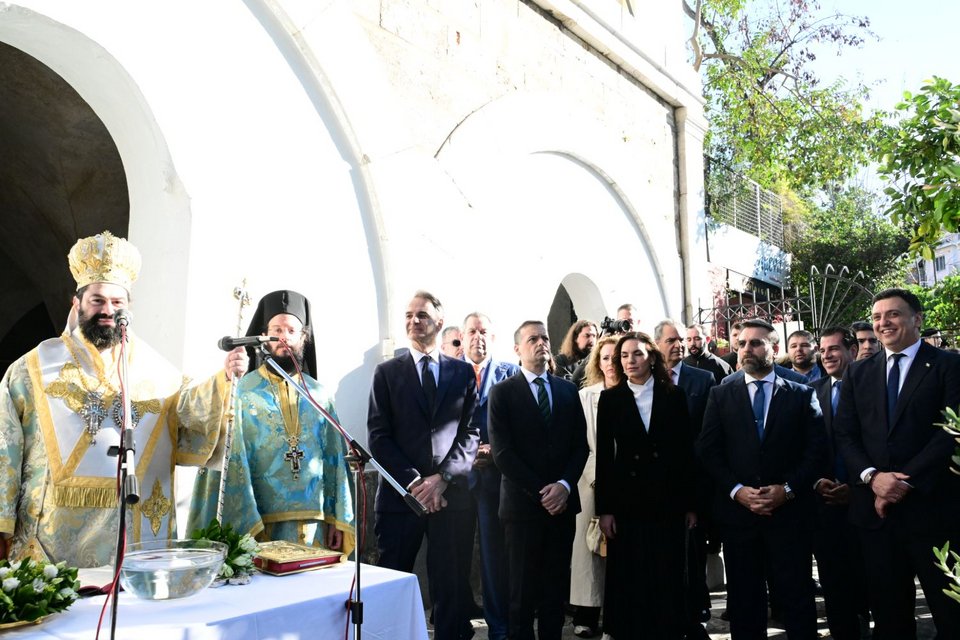Ο πρωθυπουργός, Κυριάκος Μητσοτάκης συνοδευόμενος από την κόρη του Σοφία, παρακολούθησε τη Θεία Λειτουργία των Θεοφανίων στον Ιερό Ναό του Αγίου Διονυσίου του Αρεοπαγίτου και παρέστη στην τελετή Αγιασμού των Υδάτων στη Δεξαμενή Αθηνών.