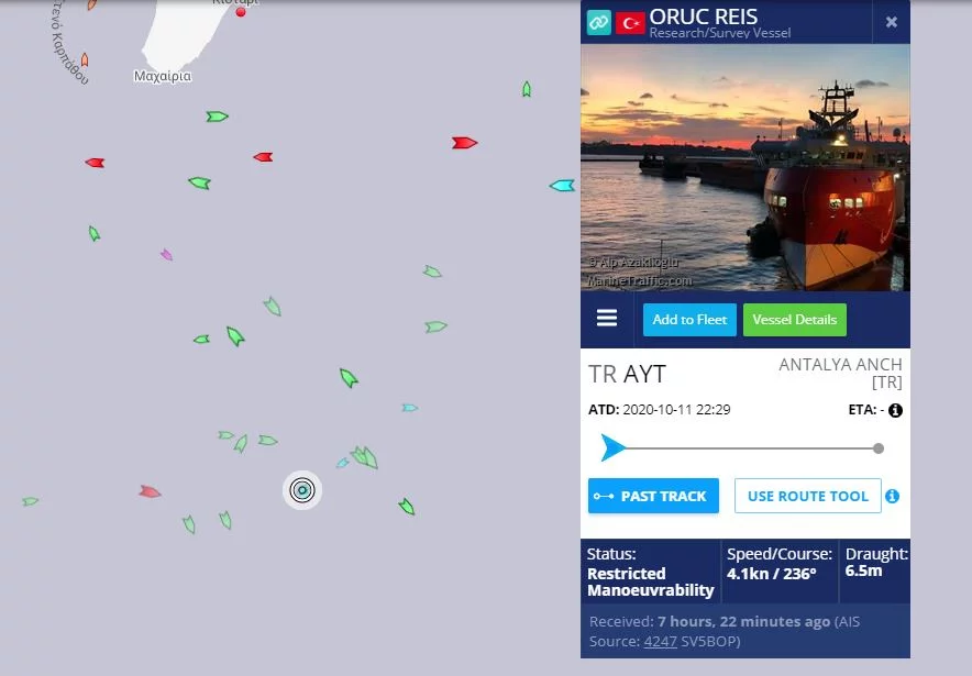 Στην διάρκεια της νύχτας, το Oruc Reis παρέμενε νοτιοδυτικά του Καστελόριζου, έχοντας κλείσει μάλιστα τους πομπούς του από τα μεσάνυχτα.