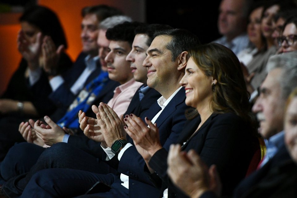 Με βραχνή φωνή εξαιτίας κρυολογήματος, ο Αλέξης Τσίπρας ανέβηκε καταχειροκροτούμενος στο βήμα.