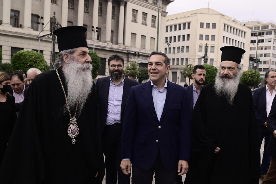 Εν συνεχεία ο πρόεδρος του ΣΥΡΙΖΑ-ΠΣ επισκέφτηκε τα γραφεία της Ιεράς Μητρόπολης Πειραιά, όπου και είχε σύντομη συνάντηση με τον Μητροπολίτη Σεραφείμ. «Είναι χαρά μου που είμαι εδώ, γνωρίζω ότι η Ιερά Μητρόπολή σας έχει ένα ιδιαίτερο έργο και μια ιδιαίτερη παρουσία στο κοινωνικό χώρο, το οποίο εμένα με συγκινεί ιδιαίτερα, γιατί πιστεύω ότι στις μέρες μας, αν έχουμε κοινό σκοπό, τη δικαιοσύνη, οφείλουμε να κάνουμε πράξη τη δικαιοσύνη, προστατεύοντας τους αδύναμους», είπε ο κ. Τσίπρας σε διάλογο που είχε με τον Μητροπολίτη Πειραιώς μπροστά στις κάμερες. «Και πραγματικά η Ιερά Μητρόπολη του Πειραιά κάνει αυτή την προσπάθεια και έχετε αποδώσει σημαντικό έργο στους συνανθρώπους που βρίσκονται ευάλωτοι στον κοινωνικό ιστό. Βεβαίως πρέπει και η πολιτεία να κάνει περισσότερα, και να ενισχύσει τις προσπάθειες σας», συνέχισε. Πρόσθεσε ότι «είναι πολύ παρήγορο το γεγονός ότι εκατοντάδες συμπολίτες μας εθελοντικά ενεργοποιούνται σε μια σειρά από δομές και είναι δίπλα στον συνάνθρωπο που έχει ανάγκη». Ο κ. Τσίπρας ανέφερε ότι «βασικό συστατικό ειναι η αγάπη προς τον συνάνθρωπο αδιακρίτως…».