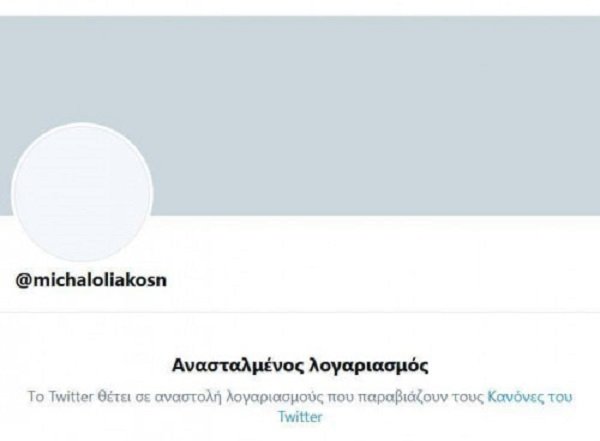 «Τo Τwitter θέτει σε αναστολή λογαριασμούς που παραβιάζουν τους κανόνες του Twitter» αναφέρεται κάτω από την ενημέρωση των σε αναστολή λογαριασμών.