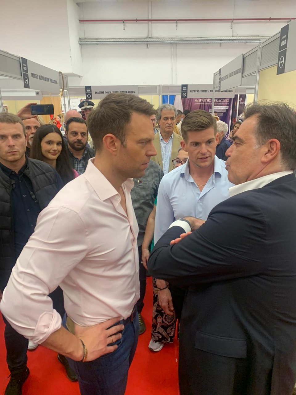 Τυχαία συνάντηση στην Έκθεση Βιβλίου Θεσσαλονίκης είχαν ο Ελληνας Επίτροπος, Μαργαρίτης Σχοινάς και ο πρόεδρος του ΣΥΡΙΖΑ, Στέφανος Κασσελάκης.