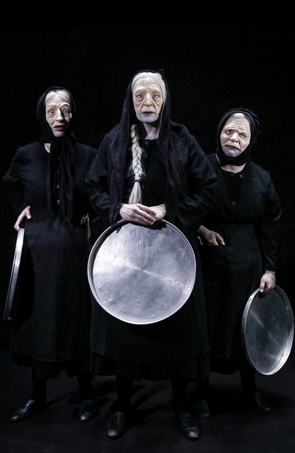 Αυτές οι γυναίκες που έμειναν αόρατες για χρόνια, ακόμα και για τους ερευνητές -αφού δεν θεωρούσαν άξιο καταγραφής τον λόγο μιας γυναίκας για την ιστορία ενός τόπου- , προσεγγίζονται σκηνικά από τρία αρσενικά νεαρά σώματα, επιχειρώντας να φέρουν στη σκηνή το προσωπικό και συλλογικό αφήγημα του οικείου γηρασμένου θηλυκού σώματος. Με εκφραστικά εργαλεία τις πρώτες ύλες της τελετουργικής διαδικασίας, τη μεταμφίεση, τη μάσκα και τον συντονισμό του λόγου και του σώματος, οι τρεις ηθοποιοί επιδίδονται σε ένα καταιγιστικό storytelling που ταξιδεύει από τις Μεταμορφώσεις του Οβίδιου και τα Φαρσάλια του Λουκανού μέχρι τη σύγχρονη ελληνική λογοτεχνία του Θωμά Ψύρρα και της Μαρούλας Κλιάφα, από παλιότερες αφηγήσεις, συνταγές και ιατροσοφικούς κώδικες του 19ου αιώνα, μέχρι σύγχρονες συνεντεύξεις που έγιναν κατά τη διάρκεια των παραστάσεων στη Θεσσαλία.