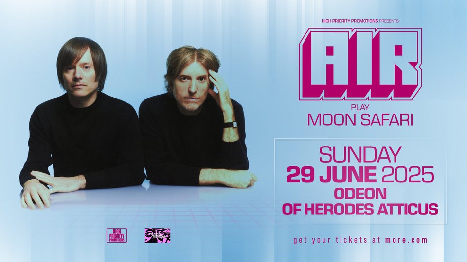 Το 2024, οι Air παρουσίασαν το Moon Safari ζωντανά στο σύνολό του για πρώτη φορά. Με αυτό το αριστούργημα στο ρεπερτόριό τους, θα μας επισκεφθούν για να προσφέρουν μια αξέχαστη συναυλία στο μαγευτικό Ωδείο Ηρώδου του Αττικού την Κυριακή, 29 Ιουνίου 2025 στο πλαίσιο του Φεστιβάλ Αθηνών Επιδαύρου.