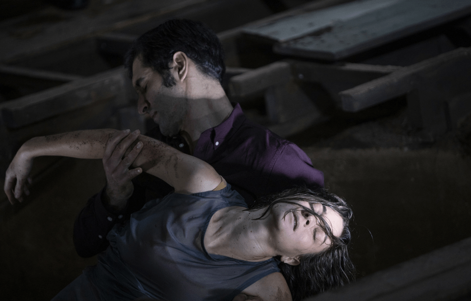 «Ο κόσμος γέρνει, γκρεμίζεται. Και έπρεπε να γεννηθώ εγώ για να τον στερεώσω», λέει ο Αμλετ (Οδυσσέας Παπασπηλιόπουλος) και πυρετικά αρχίζει να ξηλώνει τη γη. Κυριολεκτικά. Με γυμνά χέρι αρπάζει τις σανίδες στο πάτωμα, τις ξεριζώνει, τις πετά, ένα μικρό βουνό από ξύλα γύρω του, τα πόδια του πατούν βαθιά μέσα στο χώμα που καλύπτει τον χώρο κάτω από το ξύλινο πάτωμα, το υποσκήνιο του ιστορικού θεάτρου Αμφιθέατρο του Σπύρου Ευαγγελάτου αποκαλύπτεται στα μάτια του κοινού οκτώ χρόνια μετά την τελευταία αυλαία του. Είναι αυτό το μοτίβο, αυτή η λεπτή γραμμή που διατρέχει και ενώνει όλο το έργο που σκηνοθέτησε η Κατερίνα Ευαγγελάτου, με το υπέροχο κείμενο του Γιώργου Χειμωνά (κάθε λέξη ένας μικρός σταυρός).